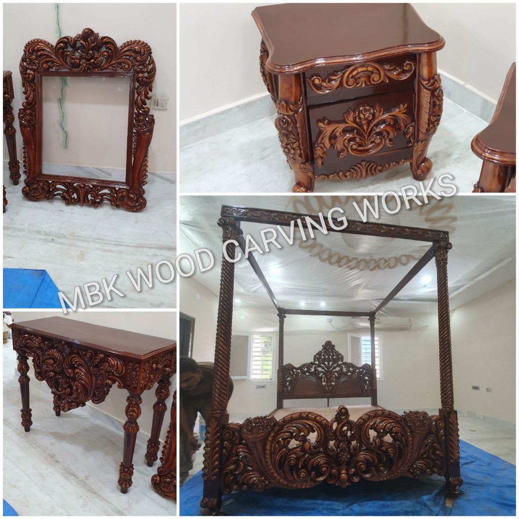 We are the best manufacturers of supplier wooden bed and dressing table best hand carving work in the city manufacturers by well experienced carpenters as per the customers requirements for future details contact 9395541344